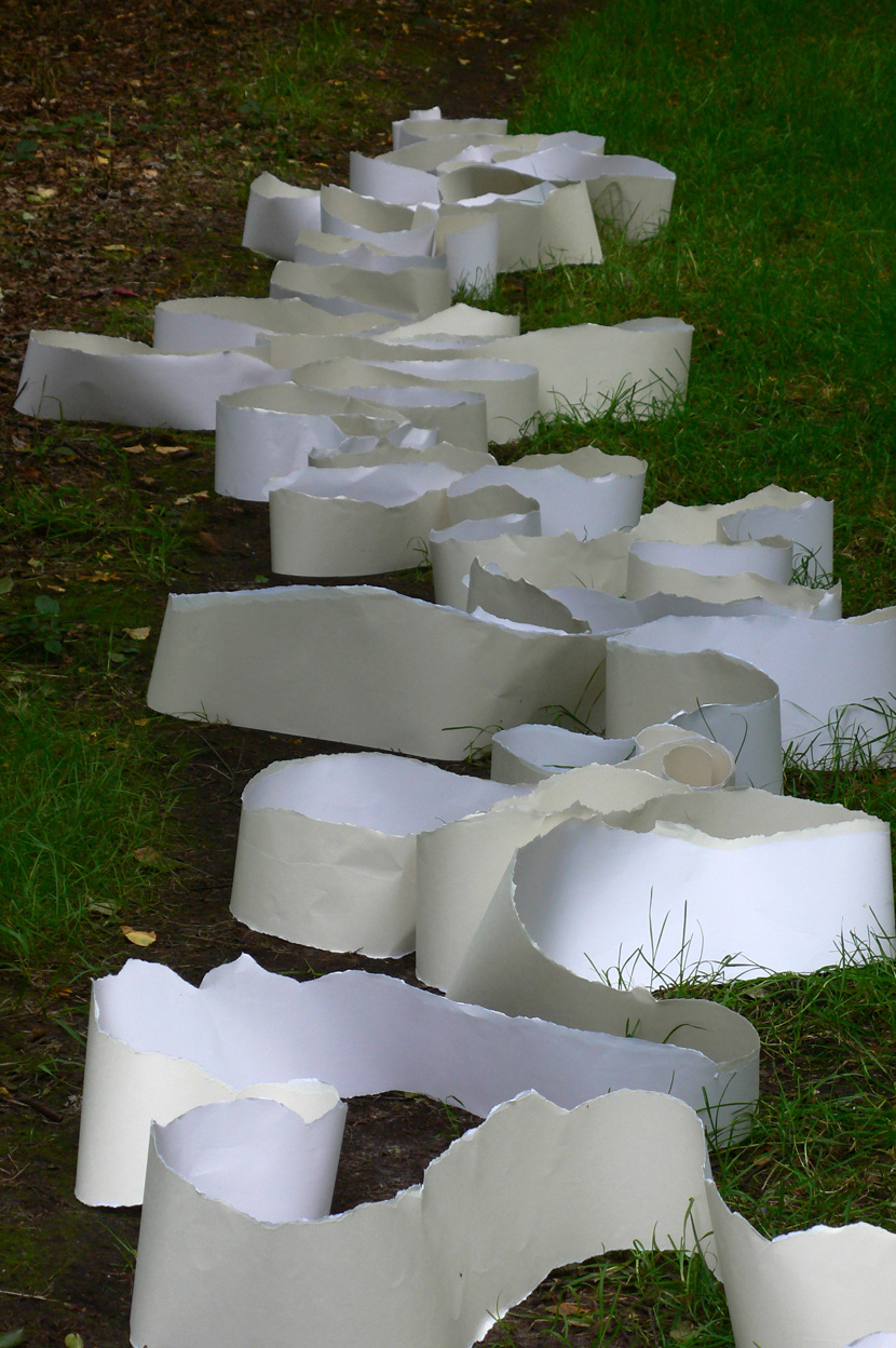 Paperline ← Previous Next → Paperline, 2007, Jane Ponsford Part of an installation marking paths and drawing lines on the landscape