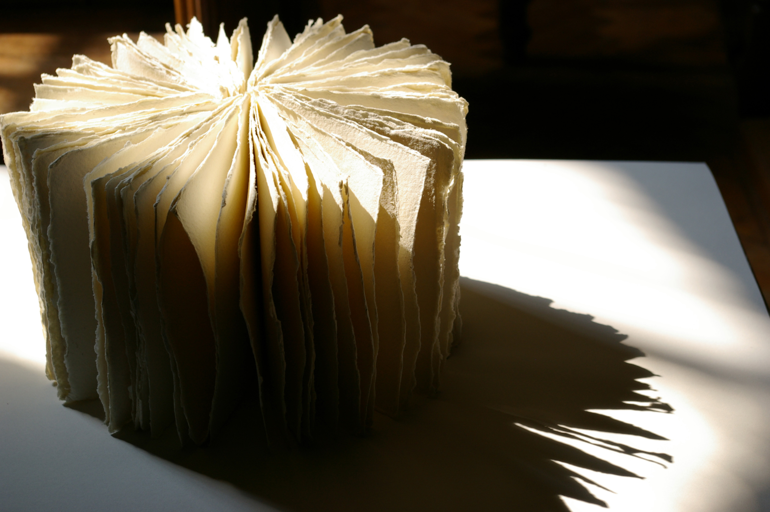 Handmade paper bound into a circular shape.