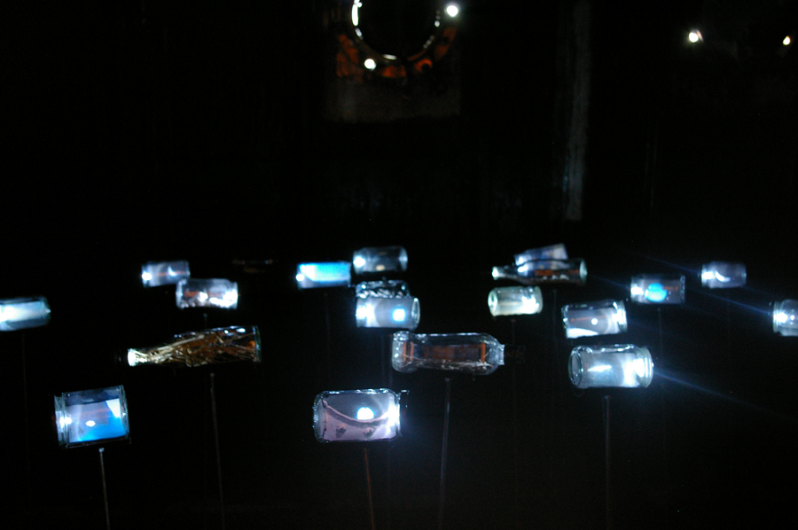 Endless Voyage, 2011 ← Previous Next → Endless Voyage, 2011 Installation in the engineer’s cabin on LV21 Found objects: old bottles, photographs, silt and Medway water